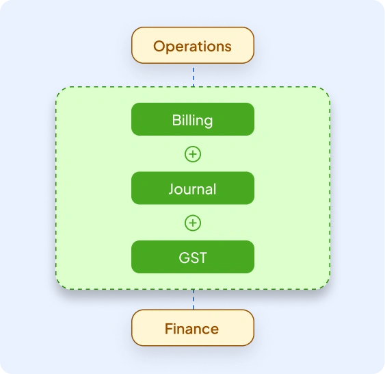 Automate journal postings, billing, TDS/TCS and GST compliance with direct integration between operational and financial modules.